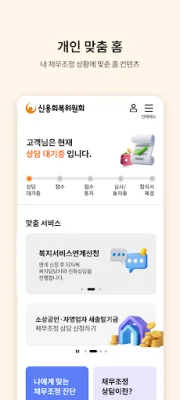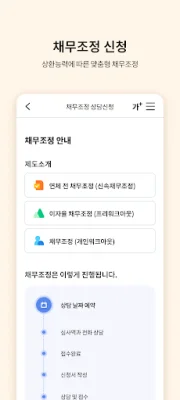 "「신용UP 채무DOWN」 is an application that helps individuals struggling with debt to seek assistance from the Credit Recovery Committee. This committee was established in 2002 and operates as a public special corporation under the "Law on Support for the Financial Life of the Underprivileged." They provide support to those who are unable to repay their debts through interest rate adjustments, extended repayment periods, and debt reduction. Through the app, users can apply for the Credit Recovery Committee's debt adjustment program. Depending on the length of delinquency, there are three options available: "Pre-Workout" for those who are less than 30 days delinquent, "Interest Rate Adjustment" for those who are 31-89 days delinquent, and "Individual Workout" for those who are 90 days or more delinquent. If the app displays a blank screen upon opening, users are advised to update their Chrome browser and try again. If the issue persists, they can contact the counseling center for assistance. The Credit Recovery Committee's counseling center can be reached at 1600-5500 from 09:00 to 18:00 on weekdays. Counseling services are free of charge, and users are warned to be cautious of illegal brokers. The app also provides information on loan interest rates and repayment periods. The repayment period can range from 6 months to 5 years, and there are no additional fees or charges besides the maximum annual interest rate of 4%. For security purposes, the app requires certain access permissions. These include access to photos, media, and files for storing authentication certificates and checking for OS tampering. The app also requires access to make and manage phone calls for connecting to the Credit Recovery Committee and setting up push notifications. Additionally, the camera access permission is needed for taking photos of identification and documents. Users who already have the app installed will need to uninstall and reinstall it to adjust their access permissions. This app is recommended for devices with Android 6.0 or higher and is only available for members of the Credit Recovery Committee."
