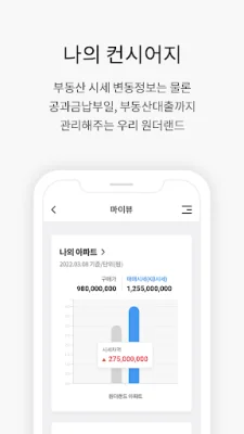 셋째로, 개인화 서비스를 제공합니다. 나의 부동산 대출 현황과 관심 부동산/지역 정보를 등록하고, 원더랜드에서 손쉽게 관리할 수 있습니다. 시세 변동도 확인하고 금융캘린더를 통해 일정 관리도 가능합니다.