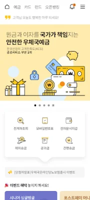 ■ Important Notes - Smart Banking services cannot be used on devices that have been modified (rooted). - Data charges may apply depending on your mobile carrier's plan. - Korea Post will never ask for your entire security card number. - Do not take pictures of your security card or enter it into any apps. Keep it safe. In order to provide customer-centered and convenient financial services, we have revamped Korea Post Banking.