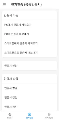 The Integrated Authentication Center (Electronic Authentication Center) is an application that provides the ability to issue, transfer (between smartphone and PC), and manage certificates on Android phones.