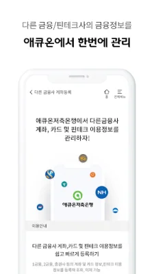 애큐온저축은행은 다른 금융사를 한번에 관리할 수 있는 오픈뱅킹 서비스를 제공합니다. 모든 금융거래와 전체 자산관리를 간편하게 할 수 있습니다.