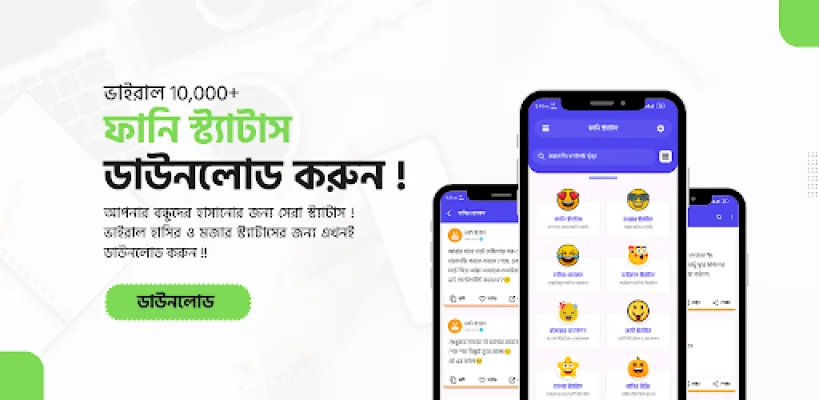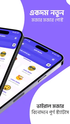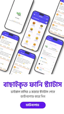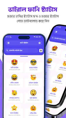সব নতুন নতুন ভাইরাল হাসির ও মজার স্ট্যাটাস পোষ্ট নিয়ে আমাদের এই বাংলা ফানি স্ট্যাটাস আপটি । এই অ্যাপটিতে রয়েছে বাছাইকৃত ফানি স্ট্যাটাস ও