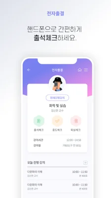 이 앱은 선택적으로 접근 권한을 요청합니다. 사진 및 미디어 접근 권한은 게시판, 시간표, 내 정보 등에서 사진 첨부 및 저장을 위해 사용됩니다. 카메라 접근 권한은 게시판 기능에서 사진 첨부나 바코드 스캔을 위해 사용됩니다. 위치 접근 권한은 출입 및 출석체크를 위해 현재 위치 정보를 사용합니다. 블루투스 접근 권한은 출입 및 출석체크를 위해 블루투스 기능을 사용합니다. 전화 접근 권한은 고객센터 등에 전화를 걸고 관리하기 위해 사용됩니다.