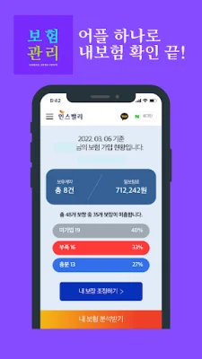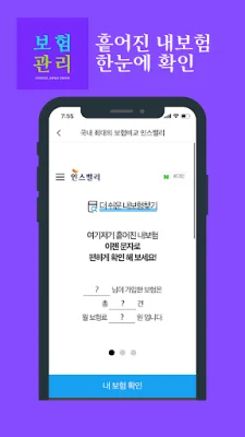 이 앱은 내보험조회를 쉽게 해주는 서비스를 제공합니다. 흩어져 있는 내보험을 한 곳에서 확인할 수 있어서 보험 가입 내역을 체크하는 것이 어려웠던 분들에게 유용한 앱입니다. 또한 매달 나가는 보험료에 대한 부담을 덜어주고, 보험 가입 내역을 확인하여 아프거나 다쳤을 때 제대로 보장을 받을 수 있는지 확인할 수 있습니다. 또한 예전에 가입한 우리 가족의 보험 내역도 쉽게 확인할 수 있습니다.