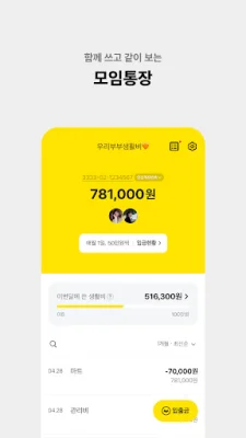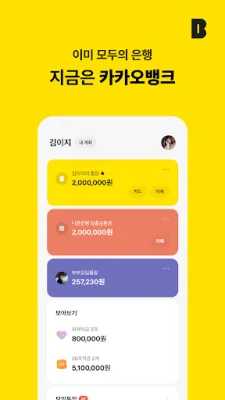 카카오뱅크는 함께쓰고 같이보는 모임통장을 제공합니다. 손쉽게 카카오톡 친구들을 멤버로 초대하고, 잔액과 입출금 현황을 멤버들과 함께 볼 수 있습니다. 또한, 위트있는 메시지카드로 회비를 요청할 수 있습니다. 또한, 고객의 신용정보를 안전하게 무료로 확인할 수 있으며, 신용 변동내역 발생 시 알림 서비스와 신용정보 관리 꿀팁을 제공합니다.