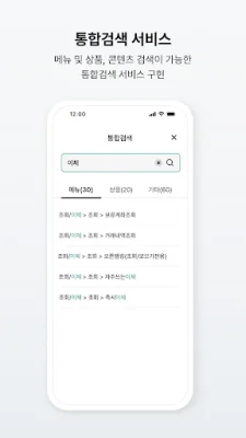 통합검색 서비스를 통해 쉽고 빠르게 원하는 메뉴나 상품을 검색할 수 있으며, FAQ 및 공지사항에서 필요한 검색 기능도 구현되어 있습니다. 또한 검색 기능이 추가된 계좌조회 및 거래내역조회를 통해 쉽게 원하는 계좌를 조회할 수 있으며, 계좌별칭을 통해 쉽게 구분할 수 있도록 기능이 제공됩니다.
