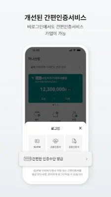 로그인 기능도 쉽고 편리하게 제공됩니다. 모바일통합인증(Hana One Sign)을 도입하여 지문, 얼굴, Face ID 등으로 빠르고 편한 로그인이 가능하며, 로그인하지 않아도 간편하게 모바일통합인증을 가입할 수 있도록 기능이 개선되었습니다.