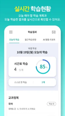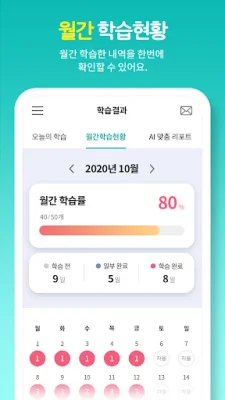 This application allows users to easily check their learning progress anytime and anywhere. It provides real-time updates on daily learning plans and results, as well as monthly reports on completed learning goals.