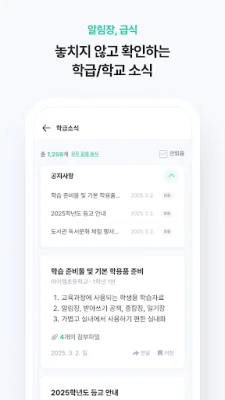 주요 학교 소식을 한 눈에 확인할 수 있으며, 학교 공지사항, 가정통신문, 급식소식, 학급 알림장 등을 모두 한 곳에서 확인할 수 있습니다.