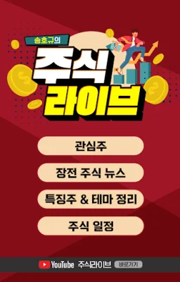 The application, called "주식라이브 유튜브", is a platform that provides real-time stock market news and analysis. It is available from Monday to Friday, with live broadcasts from 08:50 to 15:20 and recorded videos uploaded from 18:00 to 19:00. The main focus of the application is to deliver up-to-date information on stocks, including hot stocks, theme stocks, and market trends.