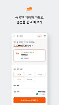 앱을 통해 계좌를 통해 충전이 가능하며, 최대 10개까지 충전용 계좌를 미리 등록하여 편리하게 충전할 수 있습니다. 충전한 상품권은 정책에 따라 취소 또는 환불이 가능하며, QR결제로 전국 온누리상품권 오프라인 가맹점에서 결제할 수 있습니다. 미리 등록한 결제용 카드로 앱이 없어도 결제가 가능하며, 앱 내 접속 가능한 제휴몰에서 온라인 결제도 가능합니다. 또한 온/오프라인에서 결제한 내역도 조회할 수 있습니다.