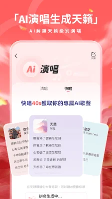 歡歌也提供強大的音效,讓你錄歌時可以選擇錄音棚、KTV等Mixer效果,讓你的作品秒變專業水準。它還有AI調音修音功能,讓你的錄音室級別作品更加完美。此外,歡歌還提供美顏MV功能,讓你一鍵美顏,讓你在K歌時更加自信。你還可以選擇多種風格的背景,快速生成專屬MV。歡歌也提供了片段快唱功能,讓你自選演唱歌詞片段,用歡樂語音展示你的K歌實力。