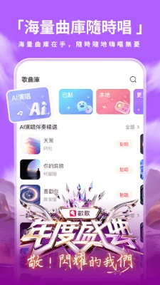 歡歌是一款年輕人喜愛的語音唱歌軟體,它提供了多種歡樂玩法,讓你享受音樂的樂趣。透過AI演唱功能,你只需錄製40秒的原聲,就能用自己的聲音製作專業單曲,讓你秒變K歌之王。此外,歡歌還收錄了全網熱門HiFi無損伴奏,讓你隨時隨地享受海量歌曲。它也提供智能評分功能,讓你得到專業歌手都在用的練歌練唱神器。你還可以與歌友合唱,享受KTV的無限樂趣。
