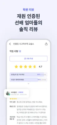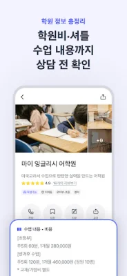학원 정보 총정리 기능을 통해 궁금했던 수업 내용, 학원비, 셔틀 여부 등을 학원 상담 전에 미리 알 수 있습니다. 또한 학원 리뷰를 통해 별점과 키워드로 한눈에 재원 인증된 선배 엄마들의 솔직한 리뷰를 볼 수 있습니다. 우리집 공유 스케줄러를 통해 아이 시간표/스케줄을 온 가족이 함께 관리하고 알림을 받을 수 있습니다. 앱 문의 기능을 통해 학원 전화상담 시간과 관계없이 간편하게 질문을 남길 수 있습니다. 저장 리스트를 통해 관심 있는 학원을 저장해두고 언제든지 빠르게 확인할 수 있습니다. 또한 지도에서 한눈에 보기 기능을 통해 대형 학원에서 공부방까지 동네 모든 학원들을 지도에서 한눈에 파악할 수 있습니다.