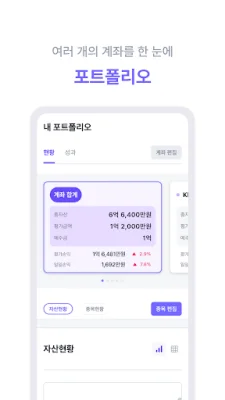 여러 계좌에 흩어진 정보를 버틀러의 기업 투자 포트폴리오를 통해 편리하게 관리할 수 있습니다. 평가손익, 일일손익, 평가비중, 예상배당금 등 다양한 그래프로 내 계좌를 한눈에 파악할 수 있습니다.