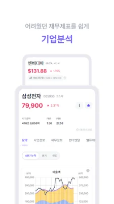 버틀러는 기업의 다양한 데이터를 이해하기 쉬운 그래프로 제공해줍니다. 펀더멘탈, 밸류에이션, 재무, 주식, 주주환원, IR정보 등을 시각화하여 제공하며, 각 그래프를 통해 투자하는 즐거움을 느낄 수 있습니다.