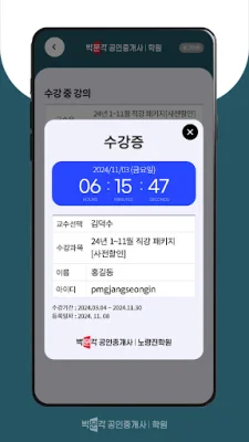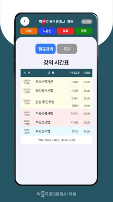 주요 기능 중 하나는 수강증 조회입니다. 이를 통해 수강생들은 현재 수강 중인 강의와 최근 수강 내역을 확인할 수 있습니다. 또한 강의실 배정표 조회 기능을 통해 현재 강남학원, 노량진학원, 종로학원, 평택학원의 강의실 배정 현황을 쉽게 확인할 수 있습니다. 이를 통해 수강생들은 강의실 배정에 대한 불편함을 최소화할 수 있습니다.