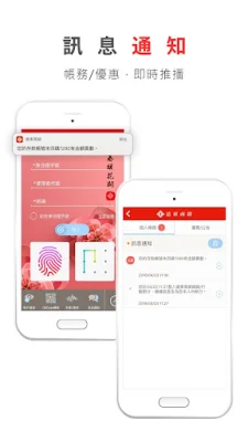 訊息通知功能讓您即時收到帳務和優惠的推播訊息。只要設定好,您就能收到各種通知,如刷卡消費、薪水入帳、ATM提款、基金扣款、定存到期等。