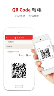 QRCode轉帳功能讓您不用記住帳號,只需拍掃QRCode就能完成轉帳。將您的存款帳號轉成QRCode,日後面對面轉帳就不用擔心記不住帳號。