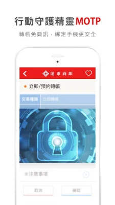 行動守護精靈MOTP功能讓您轉帳免簡訊,更安全。它使用最新的金融科技,將您的手機變成身分認證安控工具,讓您不用等待簡訊OTP(一次性密碼),就能安全又快速地完成非約定轉帳交易。
