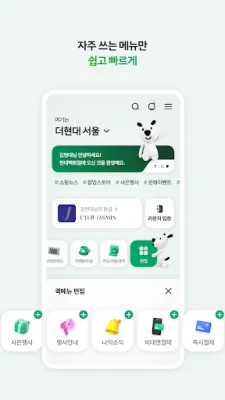 편리함과 혜택을 모두 누릴 수 있는 현대백화점 앱! 결제와 할인을 한번에 쉽게 이용할 수 있고, 다양한 혜택을 즐길 수 있습니다. 또한 식당 예약, 주문, 서비스 이용 등 백화점의 다양한 기능을 모바일로 간편하게 이용할 수 있습니다. 쇼핑 정보도 한눈에 볼 수 있어 쇼핑이 더욱 즐겁고 편리해집니다.