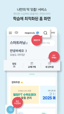 메가스터디 강의 'AI 자막 서비스'는 2021 SMART APP AWARD 교육/문화부문 통합대상을 수상한 앱입니다. 이 앱을 통해 언제 어디서나 편리하게 강의를 수강할 수 있습니다. 메가스터디는 스마트러닝앱을 통해 최고의 모바일 학습 경험을 제공합니다.
