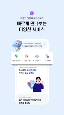 This application offers a simple and fast sign-up and login process, without the need for a security card. Users can easily log in using a simple password, pattern, or biometric information. The main screen can be customized according to the user's preferences, with personalized financial information and product recommendations. Frequently used services can also be accessed quickly and easily.