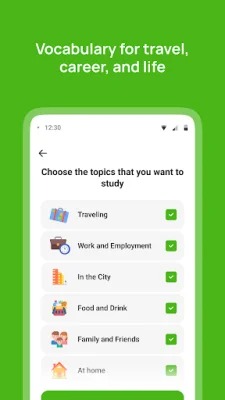 In addition to improving your vocabulary, the app also focuses on getting you speaking right away. The first 500 most popular words and phrases will give you a strong foundation to confidently describe your life, socialize, and communicate in the workplace. With 40 up-to-date topics to choose from, including travel, business, slang, and hobbies, you can tailor your learning experience to your interests and needs. By learning the top 100 verbs and adverbs, you will see immediate improvement in your language skills.