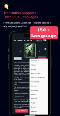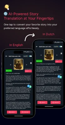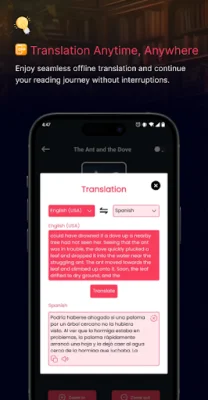 One of the standout features of this app is its AI-powered translation. With just a tap, you can instantly translate any unfamiliar word or even entire stories to better understand complex narratives. This seamless integration of translation within the reading flow makes it an effective way to learn new vocabulary without any interruptions.
