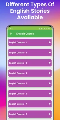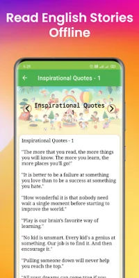 The app contains over 1000 interesting stories, including short stories, life stories, classic stories, moral stories, bedtime stories, love stories, Aladdin stories, general stories, friendship stories, family stories, kid stories, education stories, fables stories, comical stories, humorous stories, long stories, funny stories, English quotes, English proverbs, student stories, motivational stories, Akbar-Birbal stories, Tenali Raman stories, and much more. This wide range of stories caters to different interests and preferences, making it a versatile and engaging app for readers.
