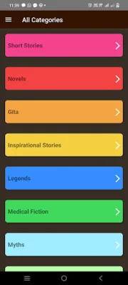 This application offers a wide variety of categories for readers to explore and enjoy. These categories include short stories, novels, Gita, inspirational stories, legends, medical fiction, myths, folk tales, fairy tales, fables, climate fiction, epics, detective stories, comedy, and biographies. Each category offers a unique reading experience and allows readers to discover new and exciting stories.