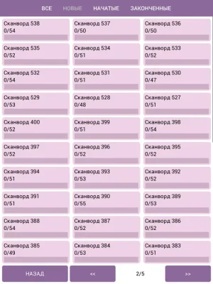 Навигация в приложении очень проста, сканворды разделены по категориям: "Новые", "Начатые" и "Законченные", что позволяет легко найти тот сканворд, в который вы играли в прошлый раз. Также вы можете менять масштаб для удобства игры. Приятной игры!