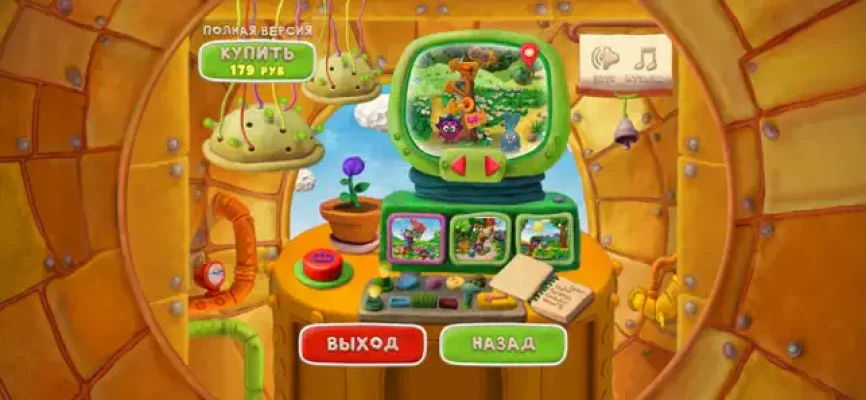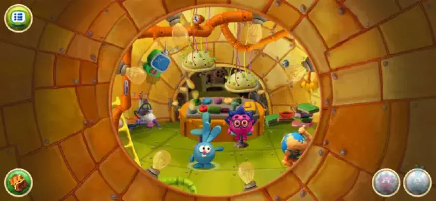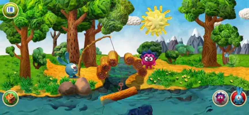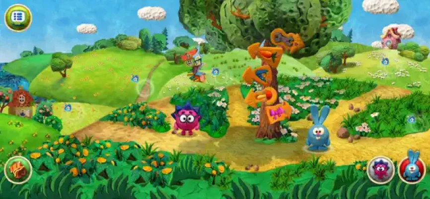 Get ready to embark on an exciting adventure with Crosh and Hedgehog in the world of clay by installing this game! Explore a new world with them and interact with other clay Smeshariki! Wake up the sleeping Sheep, entertain Nyusha, help Karkarych, visit Kopatych's garden, use the knowledge of Losyash and the skills of Pina, visit Sovunya and finally help Crosh and Hedgehog return home!