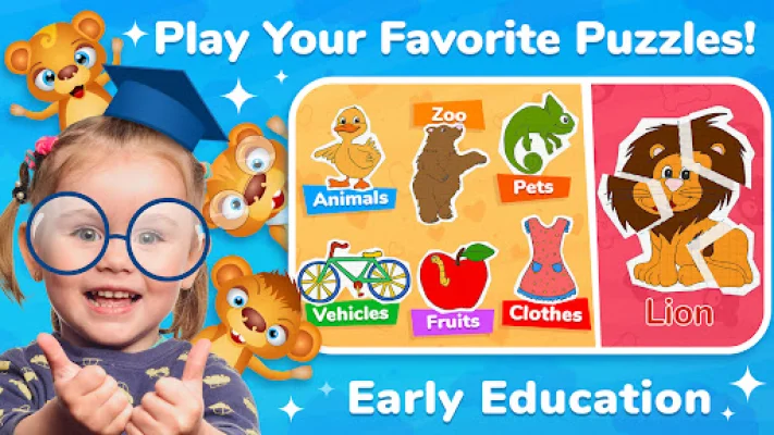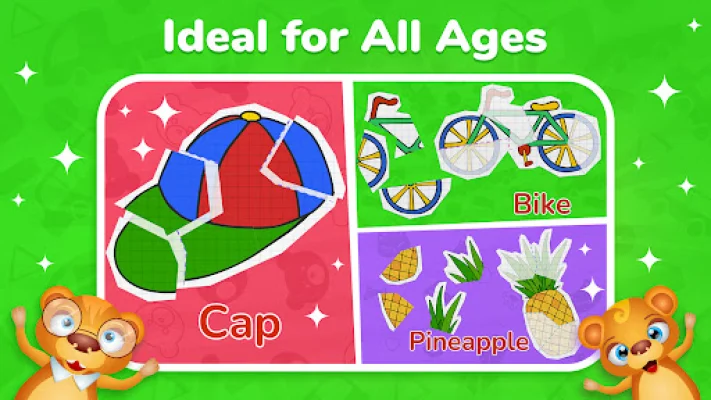 Our app features different categories of puzzles, including animals, vehicles, zoo, pets, clothes, and fruits. With its simple navigation and interaction system, it's easy for anyone to use. Each puzzle is accompanied by English descriptions and fun background music, illustrations, and sounds, making the learning experience even more enjoyable.