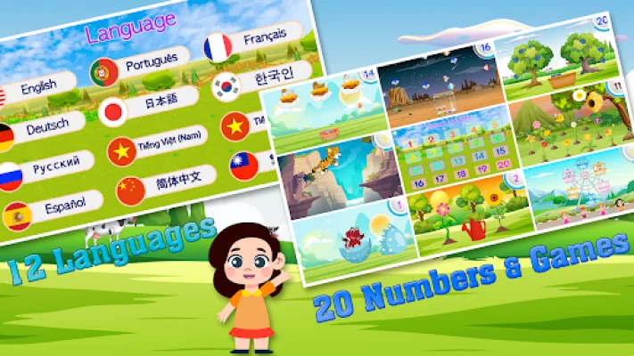 123 Kids Learn to Count Games is an interactive and engaging mobile application designed for children. With 20 different games, this app aims to help toddlers and preschoolers learn how to count from 1 to 20 in a fun and exciting way. The colorful and entertaining games make it easy for kids to grasp the concept of numbers and counting. If you're a parent or caregiver looking for a free and useful app to introduce your child to the basics of counting, 123 Kids Learn to Count Games is definitely worth considering. It provides a fun and interactive learning experience for young children, making it an ideal choice for parents who want to make learning enjoyable for their little ones. The app offers a variety of features to enhance the learning experience for children. With 20 different games to choose from, kids can learn to count in a variety of ways, such as through rainbow coloring, fishing, catching fireflies, and more. Additionally, the app supports 12 different languages, making it accessible to children from different cultural backgrounds. 123 Kids Learn to Count Games also includes funny animations and special effects to keep children engaged and entertained while they learn. The developers of the app are committed to providing the best experience for their users, and they welcome any questions or suggestions to improve their product. To get in touch with the developers, users can visit their website, Facebook page, or YouTube channel. They can also send an email to the provided address. The developers encourage users to provide original and SEO-oriented suggestions to help make their product even better. With 123 Kids Learn to Count Games, learning to count has never been more fun and interactive for young children.