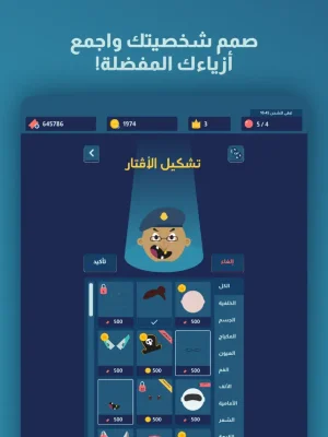 تتيح لك اللعبة تصميم شخصيتك الخاصة وجمع ستيكرات متنوعة لتزيينها. كما يمكنك جمع النقاط والصعود إلى الصدارة لتظهر أسمك في لائحة الصدارة وتحصل على الـ "تاج" المميز كمكافأة.