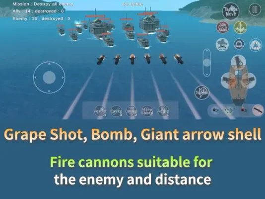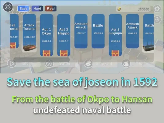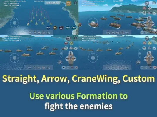Players can use the Panok ship and Turtle ship to strategically advance and defeat the enemy in battles such as the Battle of Okpo, the first naval battle, and the Battle of Hansan, one of the four major naval battles in the world. They can also create their own formations, including Straight, Arrow, and Crane wing, and choose from a variety of shells such as Grape shot, Bomb shot, Giant arrow shot, and Arrows to suit the distance and situation of the battle.