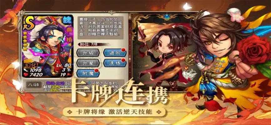 游戏的特色在于它采用了经典的纯卡牌CCG玩法。在这里,金钱并不是取胜的关键,而是玩家的策略。布阵、连携、兵法等方面都能体现出玩家强大的智商。