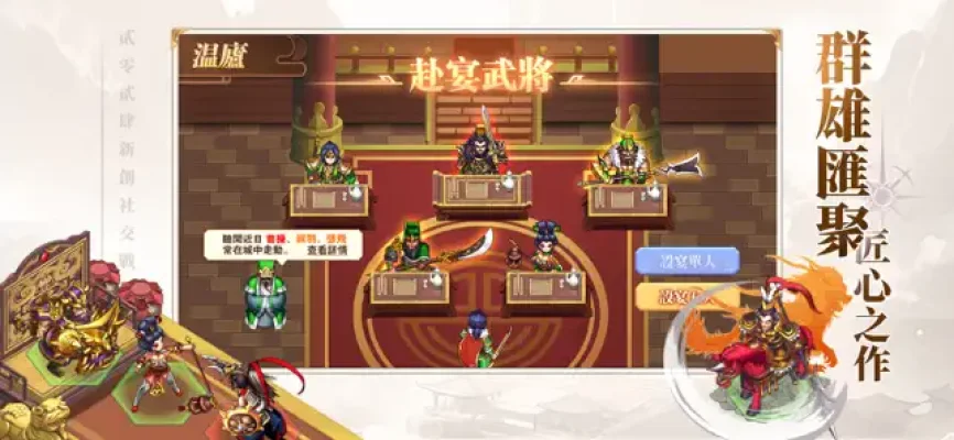 遊戲還首創了輕戰棋社交『合戰』的玩法,包括玩家競技的校武場、跨服PK的點將台、1對1單挑的擂台戰等。除了單人競技,還有公會聯盟戰,玩家可以與夥伴們同心協力,邁向更高級的團體獎勵!
