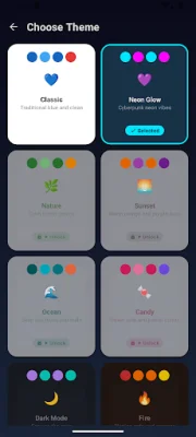 In addition to playing against the AI, you can also play with a friend on the same device in 2 player mode. This is perfect for playing with friends and family, during road trips or waiting rooms, or for quick fun during breaks. The game also features 8 beautiful visual themes to customize your experience, including a classic blue design, neon glow, nature, sunset, ocean, candy, dark mode, and fire.