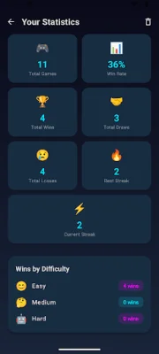 The app also includes full statistics tracking, so you can see your total games played, wins, draws, and losses, win rate percentage, current and best winning streaks, and wins breakdown by AI difficulty level. This allows you to challenge yourself to improve your stats and maintain long winning streaks. The game is free to play and can be enjoyed offline, making it perfect for all ages and situations.