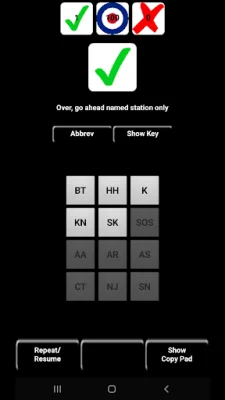 The app offers training in alphanumeric, numbers, CW prosigns, and CW abbreviations. It uses a weighted system to introduce new characters based on proficiency and exposure. There are two interface styles for receiving Morse code: keypad and copy pad. The keypad allows you to tap or type the matching character, while the copy pad allows you to write the characters with your finger or stylus. The app also has a TX interface style for sending Morse code using a simulated straight lever.