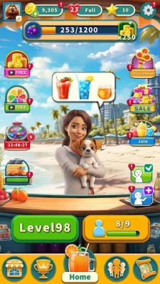 In this game, you get to run your own juice truck and travel to different countries to serve delicious juice to customers. The gameplay involves solving match-3 puzzles to earn stars, which can then be used to make juice and serve it to customers for rewards.