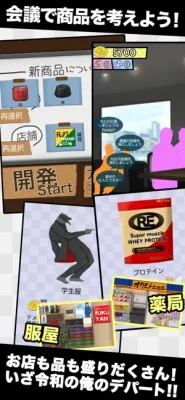 このゲームでは、様々な商品を生み出し、売ることで儲けることができます。例えば、農産物や加工食品、日用品など、幅広い商品を開発することができます。また、デパートの店舗も複数あり、それぞれの店舗で売れる商品が異なるため、戦略的に商品を配置することが重要です。