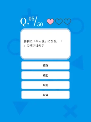 このアプリは、文学、漢字、四字熟語、ことわざ、スポーツ、音楽、地理、計算、芸能、文化などの様々な分野の問題を解くことができるクイズゲームです。体力を消耗することなく、どれだけの問題を解けるかを競うことができます。50問連続で正解することができれば、あなたの一般常識力は完璧と言えるでしょう。目指せ、50問連続解答!このゲームには一般常識問題が300問以上収録されており、あなたの常識力を測ることができます。