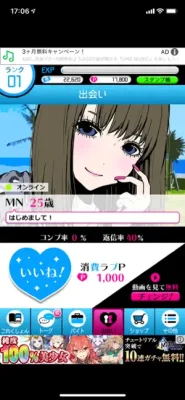 このゲームの特徴は、出会い系サイトでの「いいね!」機能です。架空の出会い系サイトで「いいね!」をすることで、彼女との出会いを探すことができます。返事が来る確率もありますので、積極的に「いいね!」をしましょう。