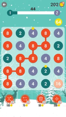Our game is simple yet addictive. Slide the numbers up, down, left, or right to connect them on the board. The result should be a multiple of 2 for all connected numbers. Your score is the sum of all connected numbers, and the game ends when there are no more connectable numbers. With eight fantastic themes to choose from, you can enjoy a beautiful minimalist flat design with relaxing game music and fun sounds.