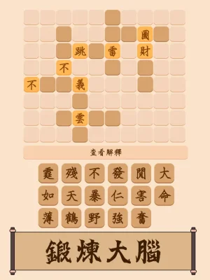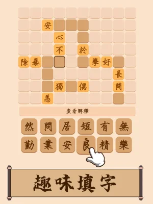 總的來說,成語填填字是一款結合娛樂和學習的遊戲,它的遊戲規則簡單易懂,畫面清新動人,適合閑暇時光來一局,提神醒腦。通過這款遊戲,玩家可以在娛樂的同時學習中國成語文化,挑戰自己的知識水平。快來下載最新版本的成語填填字,一起挑戰關卡,享受遊戲的樂趣吧!