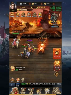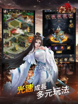 遊戲內有多樣的玩法和挑戰,包括組隊副本、BOSS挑戰、攻城戰、內城建設、掠奪、競技場、通天塔等,讓玩家無法自拔的趣味性。此外,還有跨服競賽、跨服軍團戰、陣營戰等跨服競爭和大戰玩法,讓玩家可以與各國玩家合作競爭,在中原展開激烈爭奪,撫平亂世,稱霸三國。