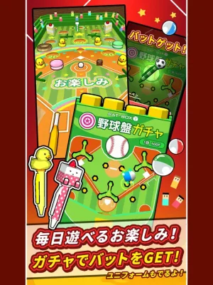 ガチャを引くことで、バットやユニフォームなどのアイテムをゲットすることができます。毎日チャレンジして、ポイントを獲得しましょう。